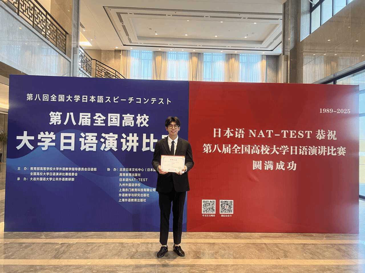 近日,在第八届全国高校大学日语演讲比赛全国总决赛中,我校学子再创佳绩。2022级临床医学专业厉海亮同学、仁济学院2023级全科医学专业任珏余同学凭借扎实的语言功底与出色的综合素质,从众多参赛高校选手中脱颖而出,分获全国一等奖和二等奖。指导教师陆晓鸣、姜海燕、张晓敏、王慧获评“优秀指导教师”。