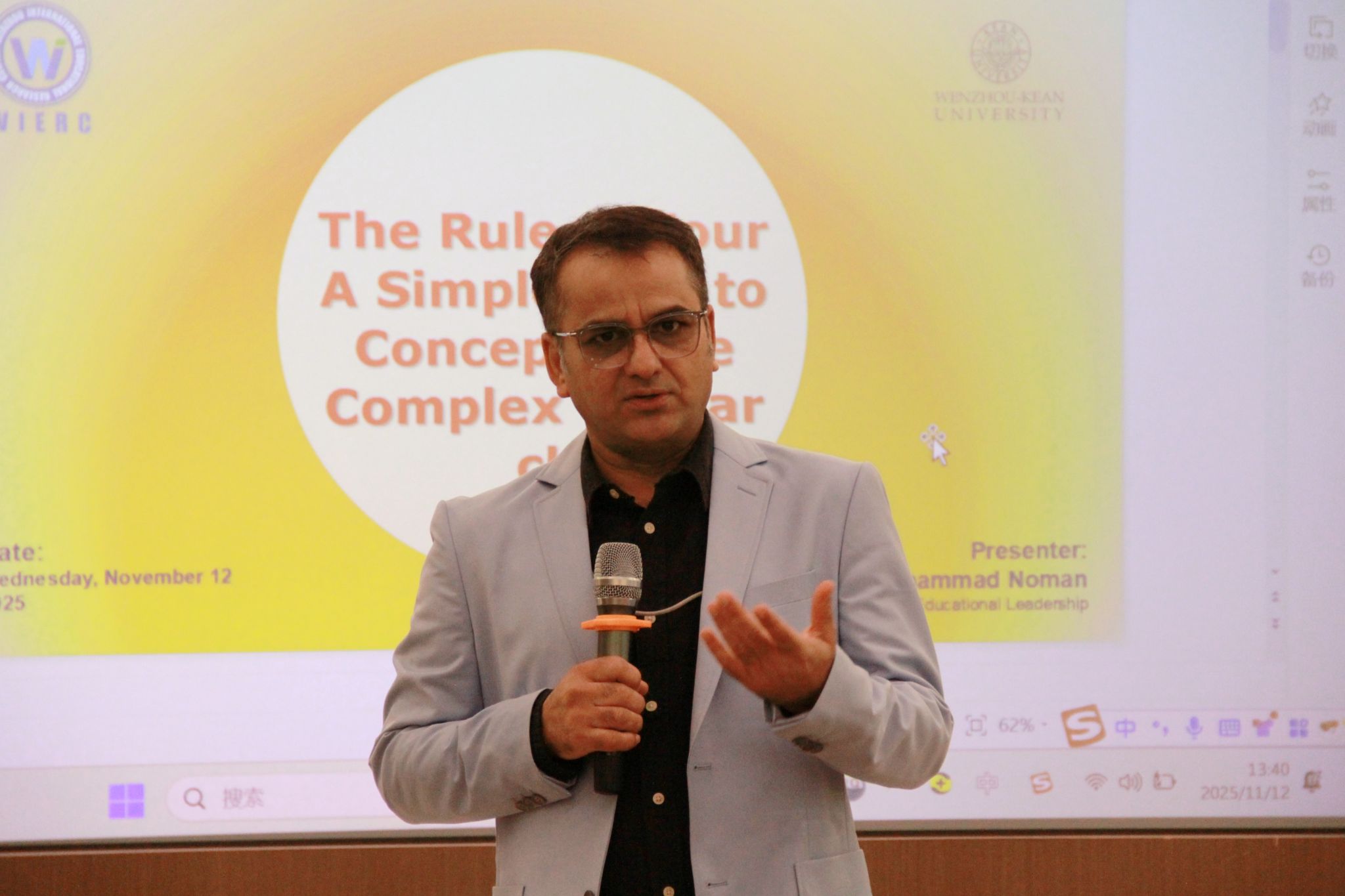 在同仁楼B104会议室举办“Voice of Research”第11期活动,邀请温州肯恩大学教育领导与管理系主任、教育领导力博导Mohammad Noman教授作题为《The Rule of Four: A Simple Way to Conceptualize Complex Research》的讲座。活动由中文AV