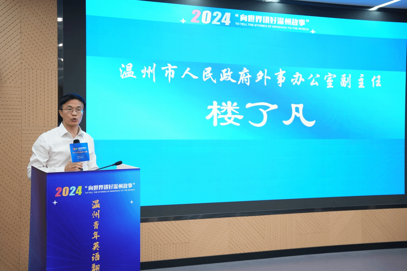 温州市人民政府外事办公室副主任楼了凡副主任也对本次大赛给予了充高度评价。他表示,本次比赛采用了抖音短视频等新颖形式进行初赛选拔,决赛中选手们的精彩表现充分展示了温州青年的风采和实力,为温州城市的国际化发展注入了新的活力。他希望更多的青年英语翻译人才能够成为国际交流合作的桥梁和纽带,为温州在国际舞台上树立新形象贡献力量。