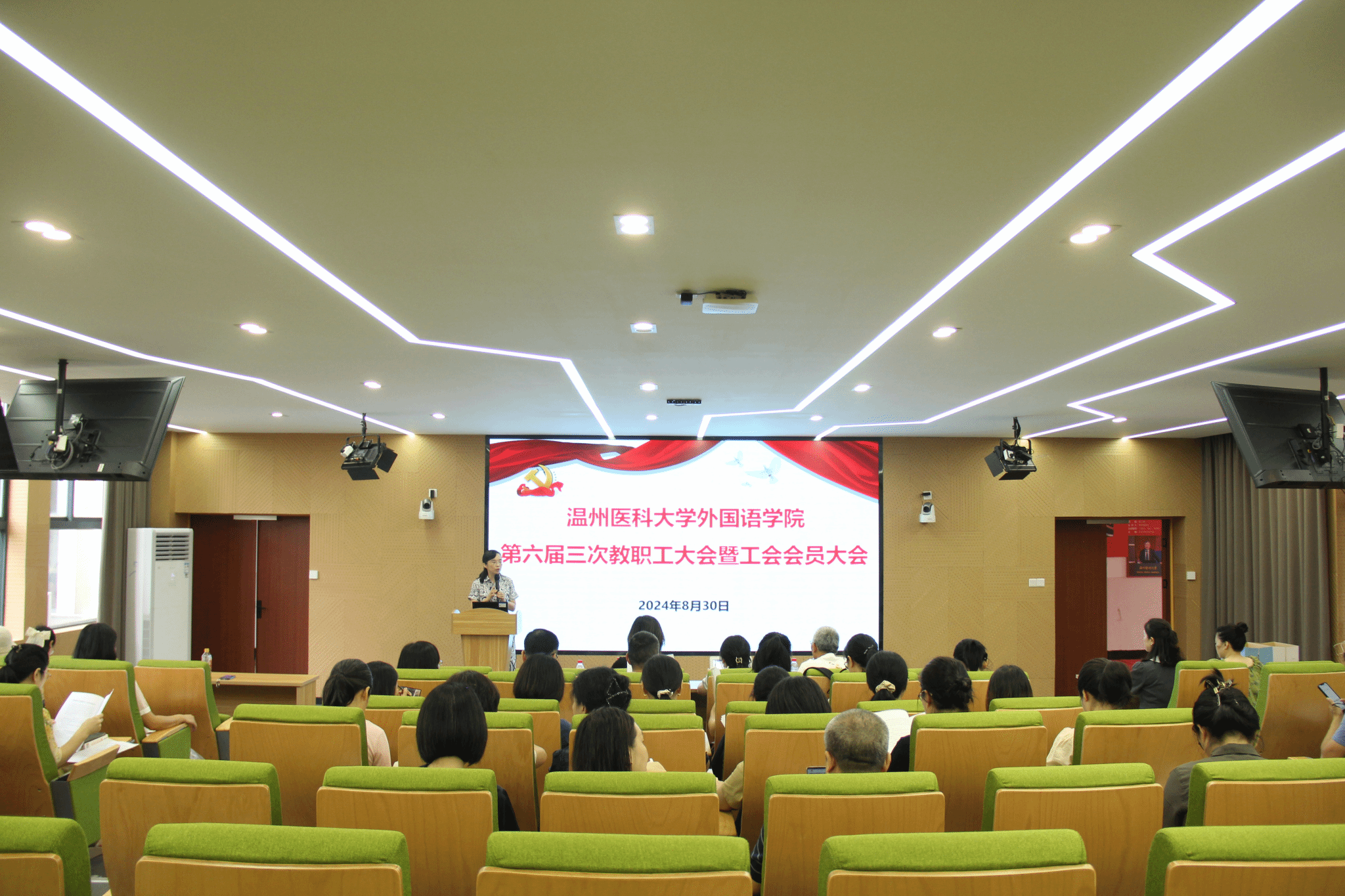 在同济楼A107召开第六届三次教职工大会暨工会会员大会。学院领导班子、全体教职工、工会会员参会,会议由院党委书记刘洁主持。