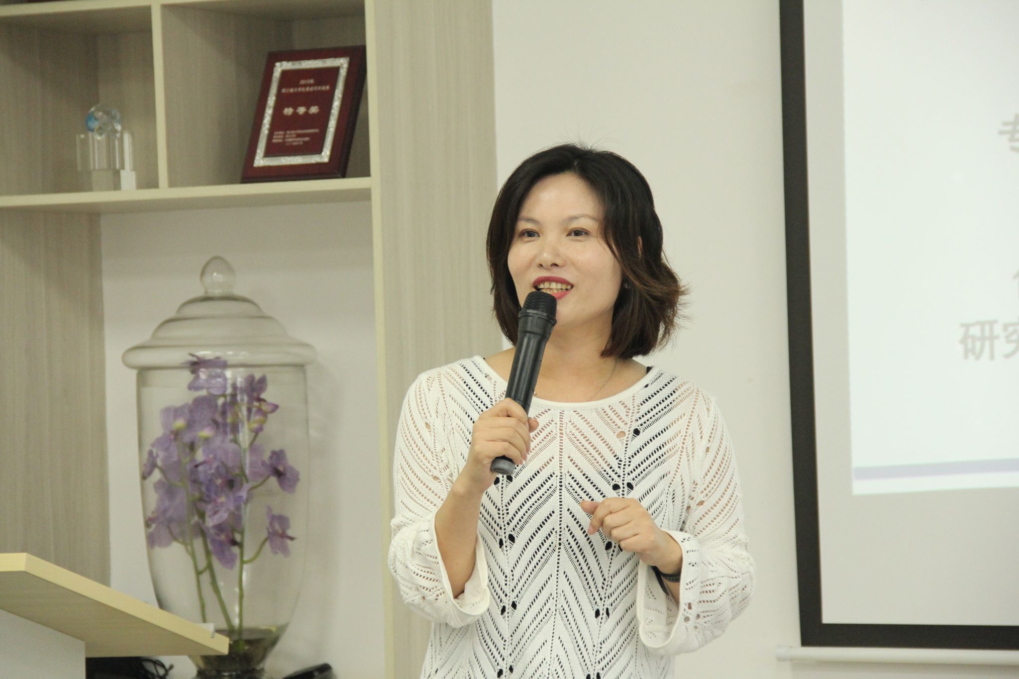 麻新芳分享参加全国高等学校《理解当代中国》系列教材任课教师培训心得。她指出,培训会上各位专家结合《理解当代中国》系列教材讲解习近平新时代中国特色社会主义思想相关专题内容,有助于教师准确理解思想内涵,提升专业素养,为外语人讲好中国故事提供了多元视角,为培养新时代外语人才提供新思路。