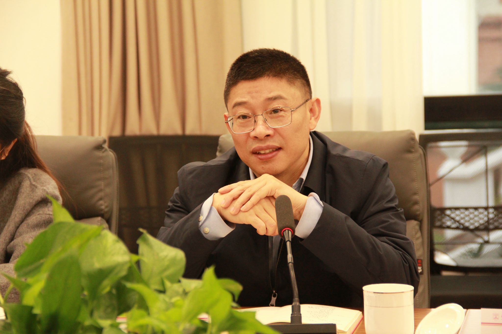 党委理论学习中心组(扩大)会议并作指导。校办公室副主任韩安月、秘书科副科长施方也陪同。学院党委书记刘洁主持会议,学院党委理论中心组全体成员、各教工党支部书记参会。