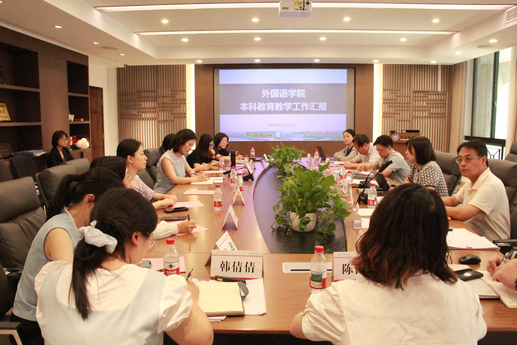 高度重视,积极部署,确保各项工作有序进行。学院上下充分认识到此次评估的重要性,将其作为推动教育教学改革、提升人才培养质量的重要抓手。章艳乐副院长作主题汇报,她系统阐述学院本科教育体系,重点展示第一第二课堂联动育人成效,并围绕“立德树人根基、师资队伍强化、国际化特色深化”三大方向规划学院发展路径,充分展示了学院在外语教育教学领域的不懈探索与积极成果。