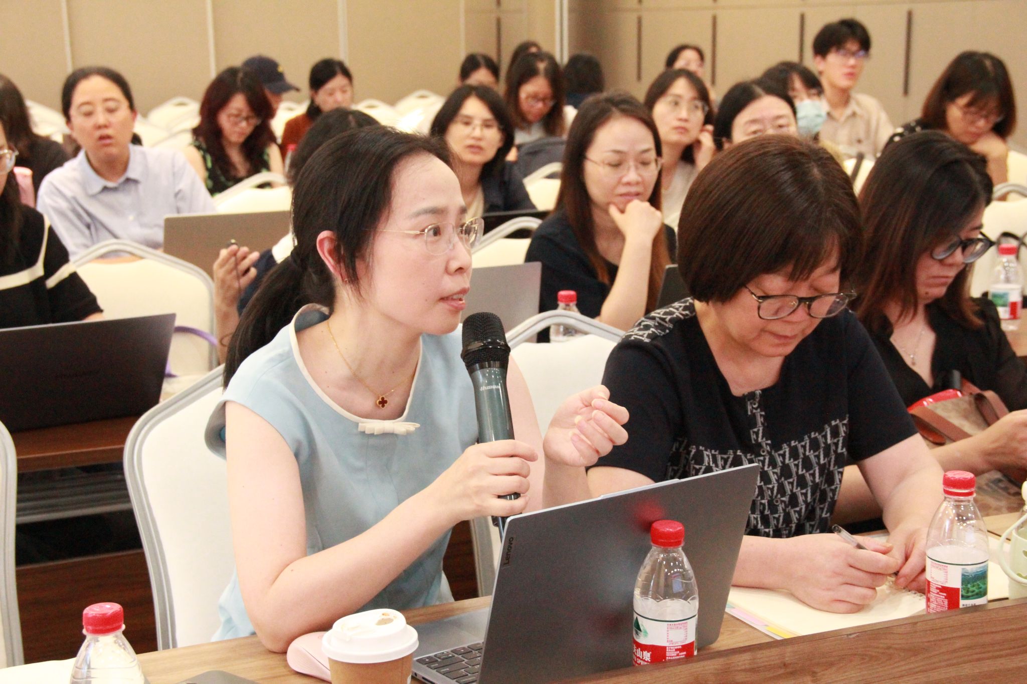 李晓倩博士和倪琴博士的学术理念深受在座教师欢迎!在每一场讲座的互动环节,老师们踊跃发言,围绕语料库数据、大语言模型、数字工具应用等内容,与两位专家展开了热烈讨论和深入交流。大家一致表示,本次学术活动提供了一个宝贵的学习和交流机会,有助于进一步提升科研水平和教学能力,为讲好温州故事,助力温州对外交流提供了智能化支持。