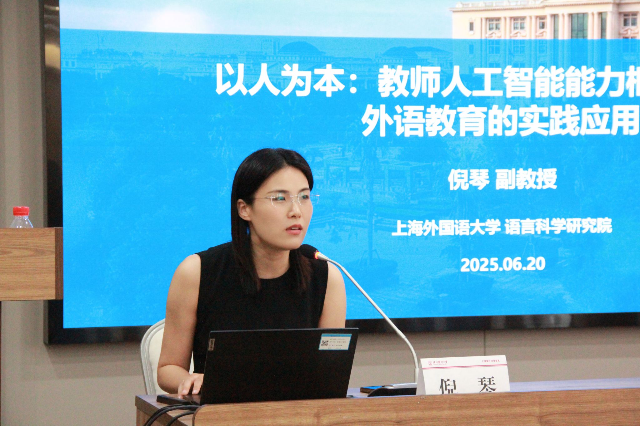 6月20日下午,倪琴以《以人为本:〈教师人工智能能力框架〉解读与外语教研的实践应用》为题讲述了人工智能技术快速发展的时代背景下教师角色的演变与教师人工智能素养的培养。她在解读联合国教科文组织《教师人工智能能力框架》的基础上阐释大语言模型的技术原理,并介绍目前国内主流的生成式人工智能教育工具。最后以Deepseek应用于外语教研为例,探讨大语言模型技术在外语教学科研的实际应用案例,为外语教研的创新发展提供启示和实践参考。