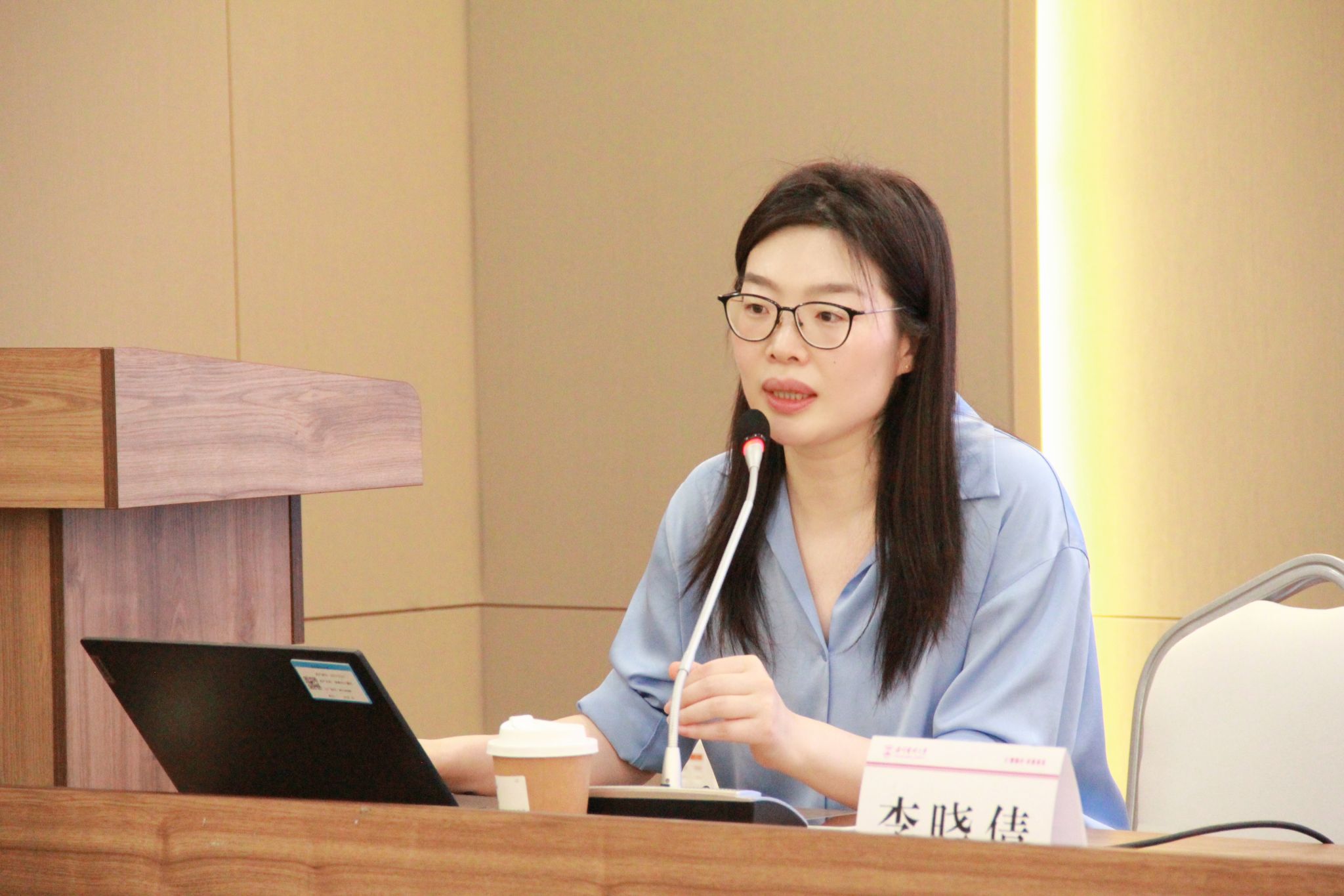 副院长章艳乐代表学院对李晓倩博士和倪琴博士的到来表示热烈欢迎,并向在座老师介绍了李晓倩博士和倪琴博士的学术成就。