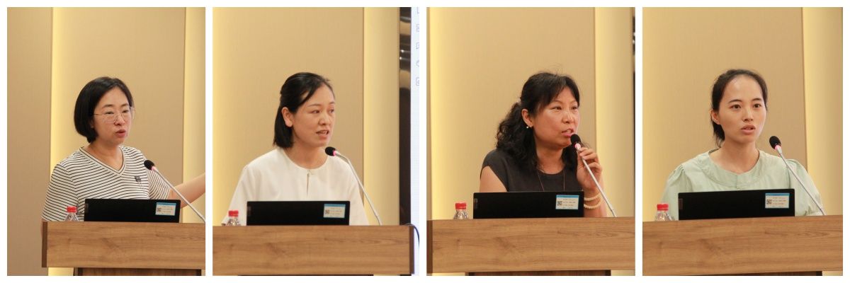 在“躬耕教坛,强国有我”主题分享会环节。林甜甜、陈亦挺、裘健和谢静四位老师作为教师代表分享心得。几位老师刚刚结束了暑期各类高水平研修项目归来,他们结合自身研修经历,畅谈了学习收获与思考。