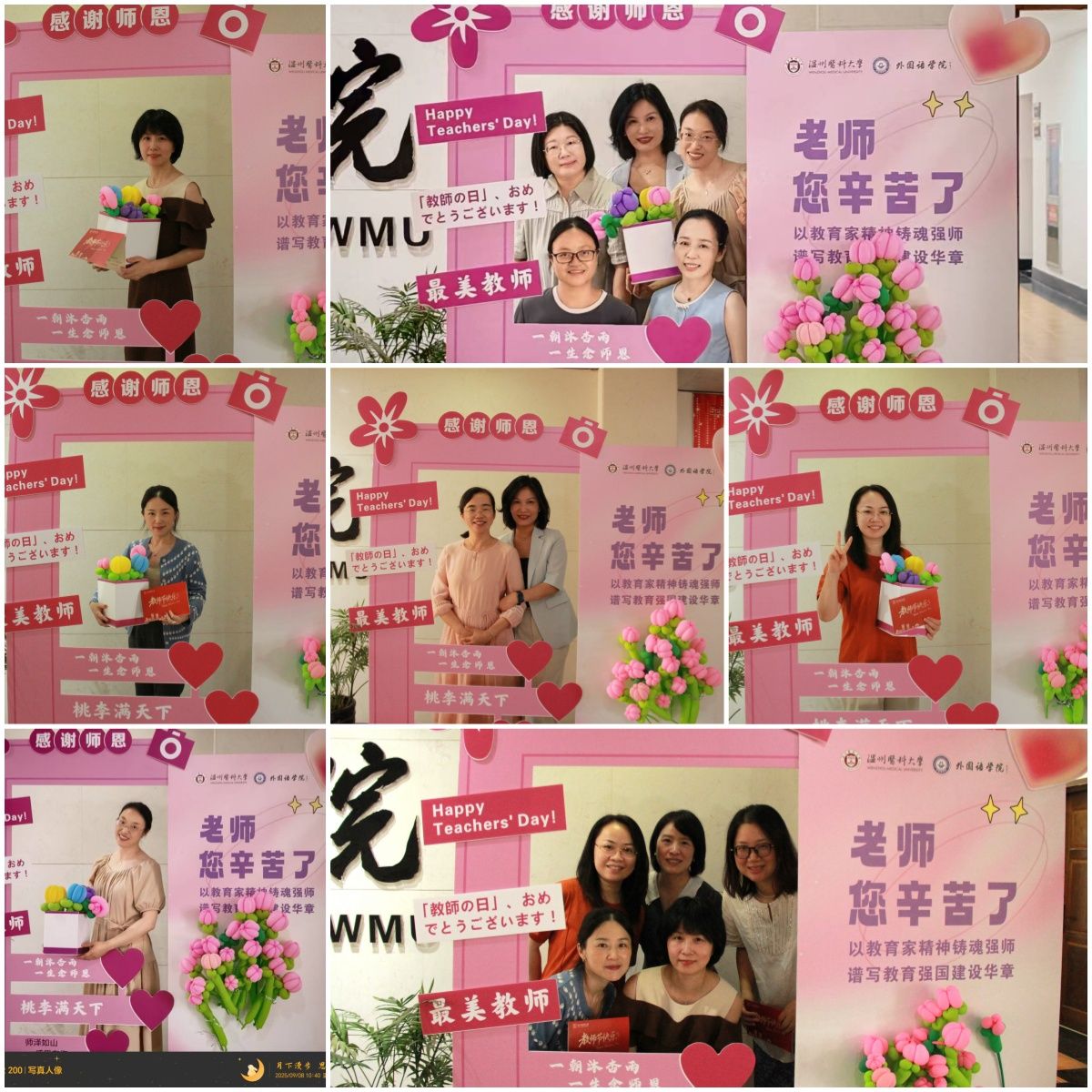 学院精心布置的教师节主题打卡墙吸引了众多老师的目光。鲜亮的主题标语、“老师,您辛苦了!”的真诚祝福,搭配着精美的装饰,营造出浓浓的节日气氛。老师们纷纷在此驻足,或单人留念,或与同事合影,用镜头记录下欢声笑语与温馨情谊,一张张灿烂的笑脸成为这个节日最生动的注脚。
