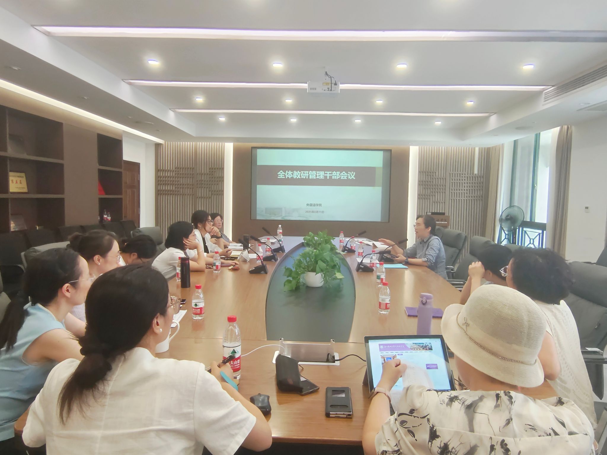在茶山校区同仁楼7B104会议室召开教研管理干部会议。学院党委书记刘洁主持会议,全体教研管理干部参会。会议聚焦本科教育教学审核评估迎检、公共外语教学改革、课堂教学质量提升等核心任务,系统部署新学期重点工作。