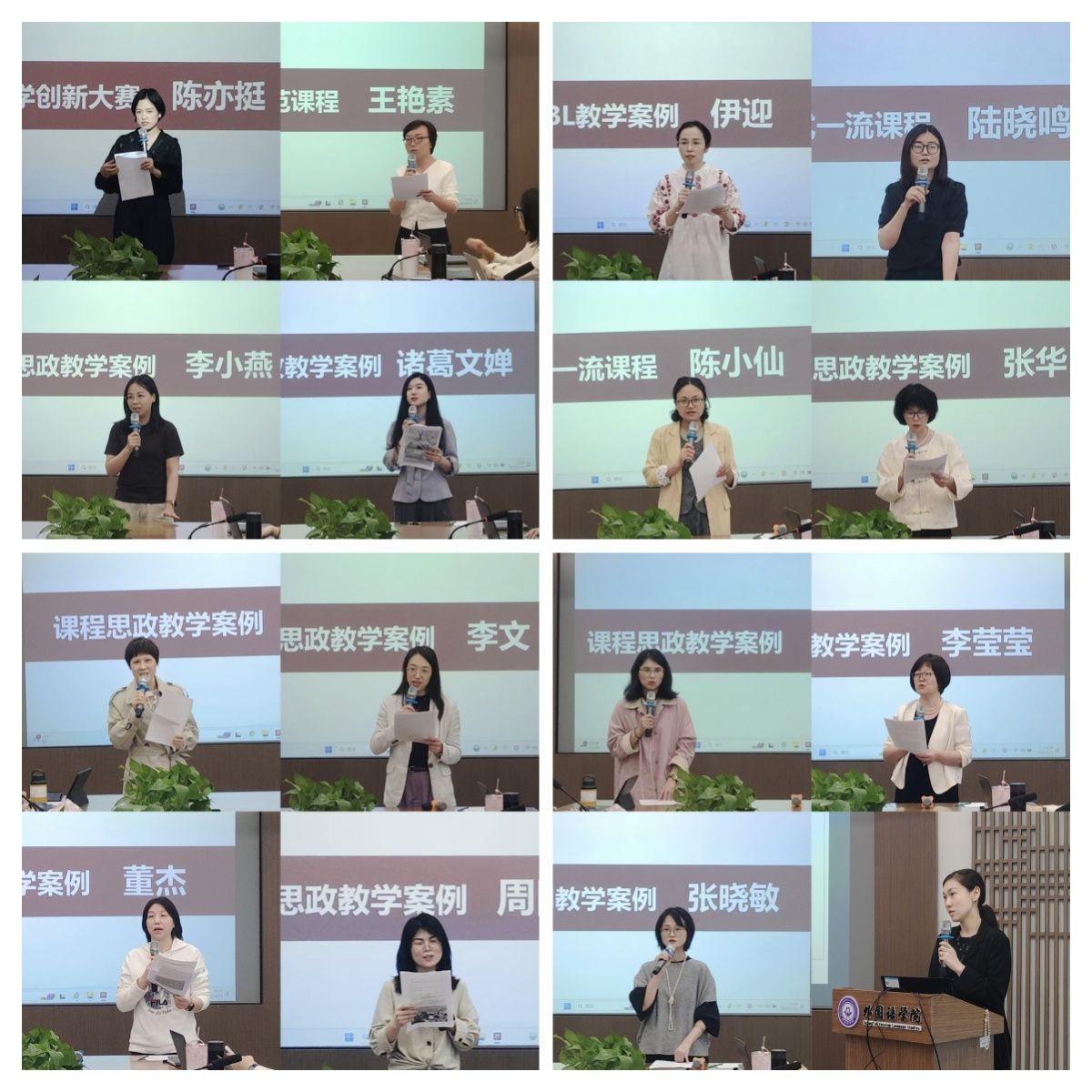 随后,学院16位课程建设、创新教学案例等负责人围绕“教学创新”主题展开精彩分享。她们立足中华文化传承、医学人文融合与“三进”工作实践,从教学理念革新、教学举措优化到教学成效呈现,全方位展示教学创新成果。陈亦挺老师以“望闻问切法”为核心,以语言运用为导向,对《通用医学英语》课程内容进行重构。李莹莹、李文老师通过医文融通教学,在课堂中有效培养学生的自我认同、文化认同与职业认同。潘惠、伊迎、王艳素、李小燕、张晓敏、董杰、麻新芳、张华、周阿芹等多位老师以“文化”为切入点,分享课程思政融合的优秀案例,培养学生的全球意识和跨文化沟通能力。陆晓鸣老师以“热爱”“改变”“成就”为关键词,分享翻译课堂融入“三进”内容,提升学生语言应用能力与政治素养的实践经验。陈小仙、李嫱、诸葛文婵等老师则分享了人工智能在英语、日语课堂教学中的创新应用,助力培养学生批判性思维并提升学生学习效果。