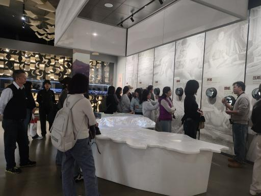 教职工们来到了泽雅传统生态造纸展示馆。泽雅屏纸制作技艺作为国家级非物质文化遗产,承载着悠久的地方历史与古老的智慧。一进入展示馆,古朴的氛围扑面而来,水碓、纸槽、捞纸架等传统造纸工具静静陈列,仿佛在诉说着千百年来纸农们“片纸来之难,过手七十二”的辛勤与匠心。