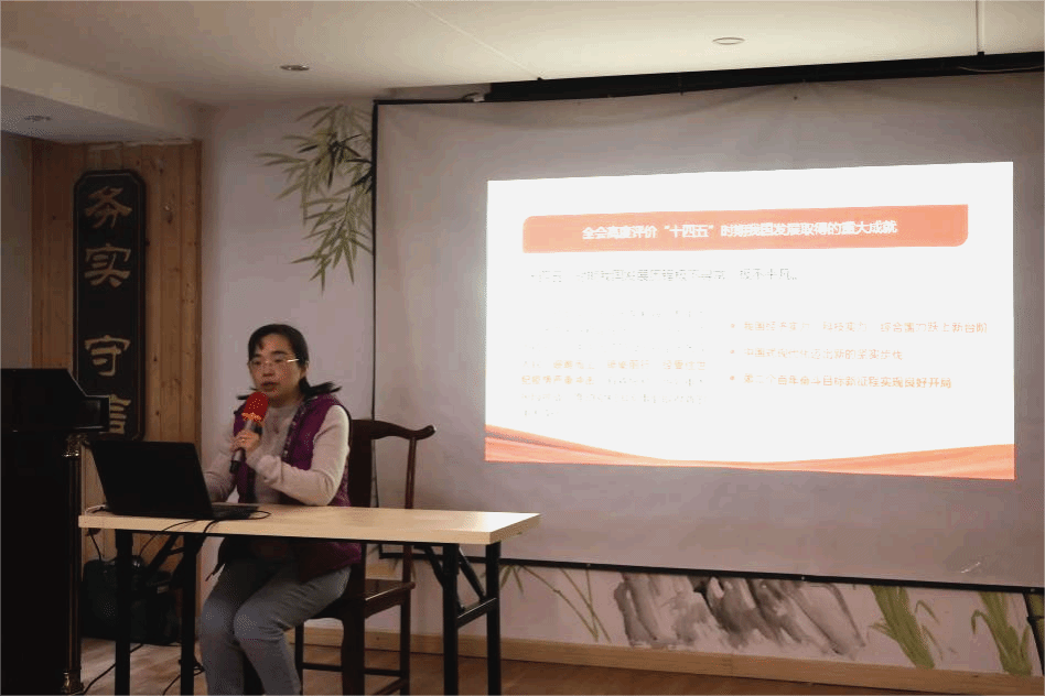 实地参观结束后,学院党委书记刘洁为全体党员作党的二十届四中全会精神学习专题党课。她传达领学了党的二十届四中全会精神,详细解读了党的二十届四中全会公报。她强调,党的二十届四中全会是“十四五”规划收官、开启“十五五”新征程的关键会议,是确保基本实现社会主义现代化取得决定性进展的重要会议。全体教职工党员要深入学习全会精神,深刻领会国家“十五五”时期的战略部署和教育使命,紧紧围绕全会提出的加快高水平科技自立自强,统筹教育强国、科技强国、人才强国建设,深入推进数字中国建设,扎实推进文化强国建设等重要要求,凝聚共识、主动作为,努力将全会精神转化为推动外语教育教学改革、提升人才培养质量的具体行动,为学校“双一流”创建工作贡献更大力量。同时,会议传达习近平对全面依法治国工作作出的重要指示。